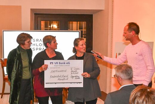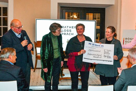 Über den Erlös des Abends in Höhe von 2.000 Euro freut sich der Kinderschutzbund Rösrath e.V.. Den Scheck überreichte Norbert Lenke, Vorsitzender der Bürgerstiftung Rösrath, an die beiden geschäftsführenden Vorstandsmitglieder des Rösrather Kinderschutzbundes, Petra Berndorff und Heike Schmitz. Diese gaben an, den Betrag für die Realisierung eines Medienprojektes für Rösrather Kinder einsetzen zu wollen.